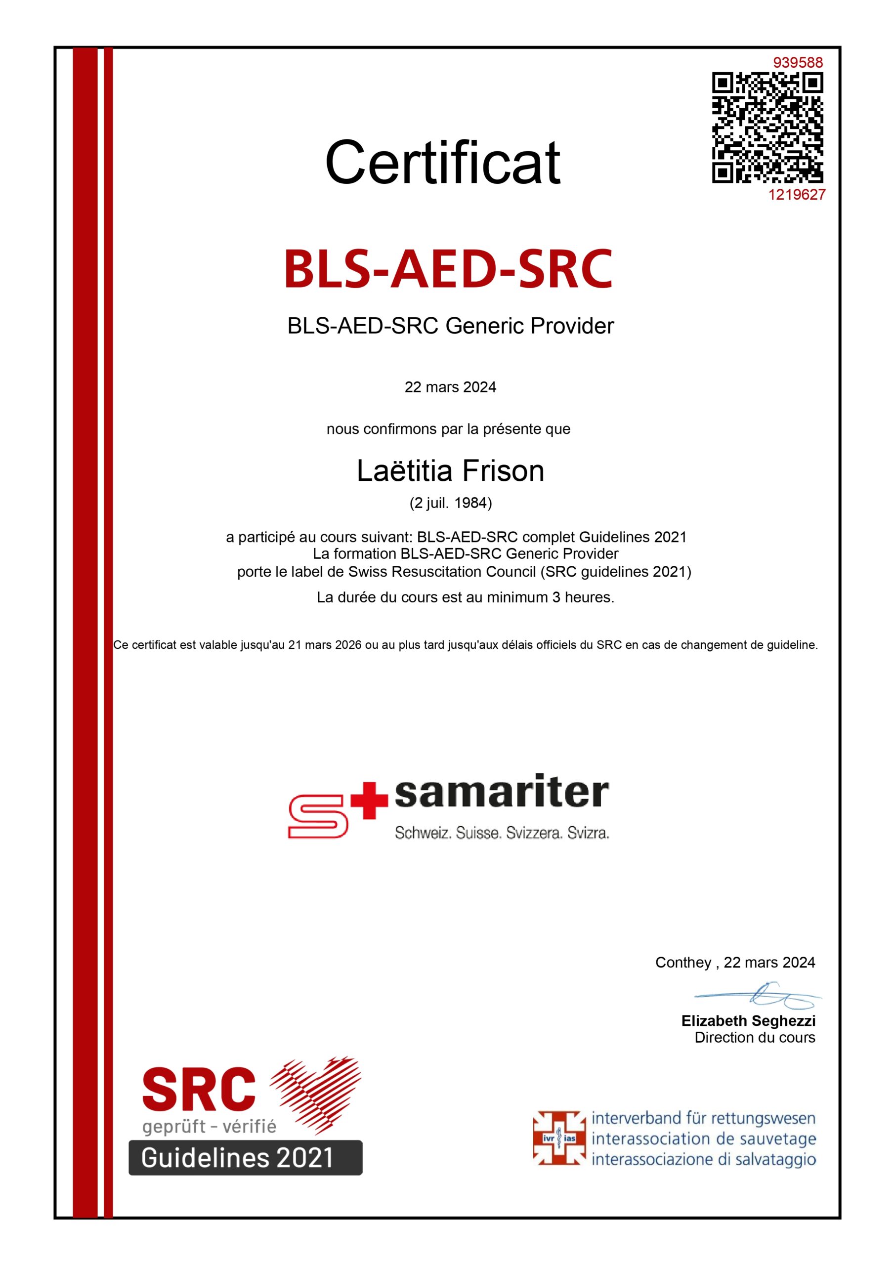 fait à Genève Petit Saconnex par Marie Carmen agrée ASCA