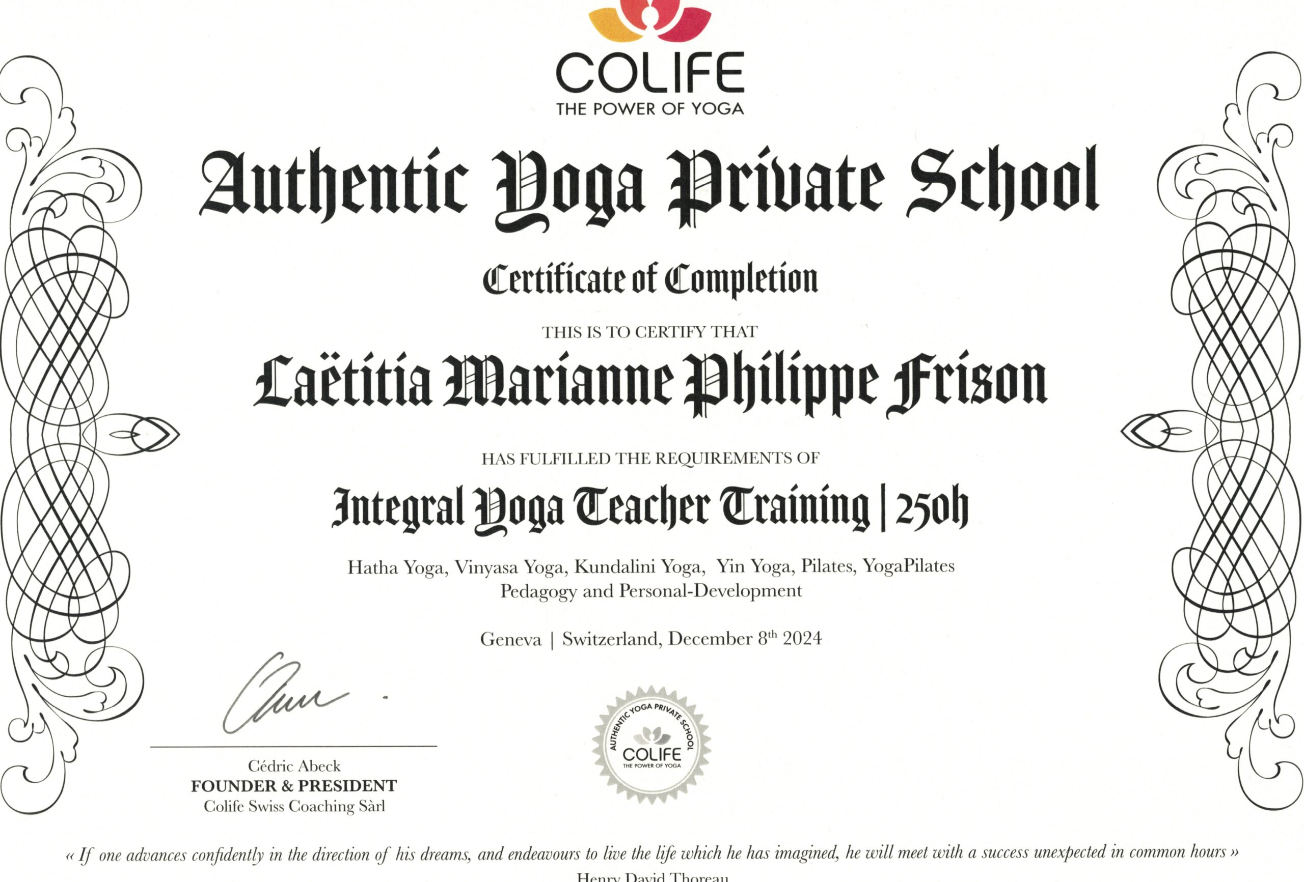 DIPLÔME PROF. DE YOGA