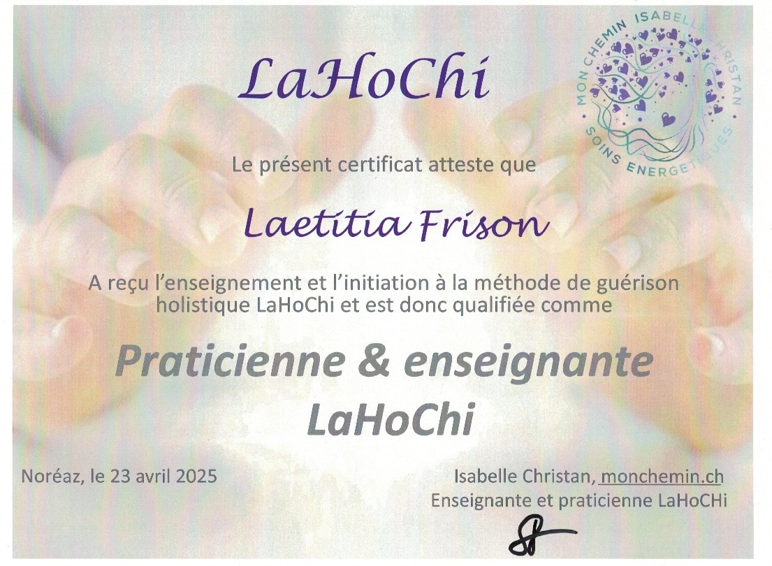 Aujourd’hui, j’ai fait de mon chemin de guérison une vocation. Formée en Reiki et en LaHoChi, j’accompagne les personnes qui, comme moi, se retrouvent à un tournant de leur existence, fatiguées, déconnectées, en perte de repères… mais prêtes à se retrouver. Je propose des cours de yoga, des soins énergétiques et prochainement, je compléterai mon accompagnement grâce à une formation en naturopathie que j’ai entamée pour devenir thérapeute à part entière.